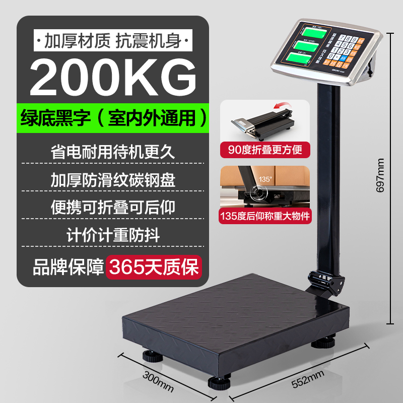 电子台秤磅秤落地电子秤,200Kg/50g,碳钢盘55*30cm可折叠/可后仰
