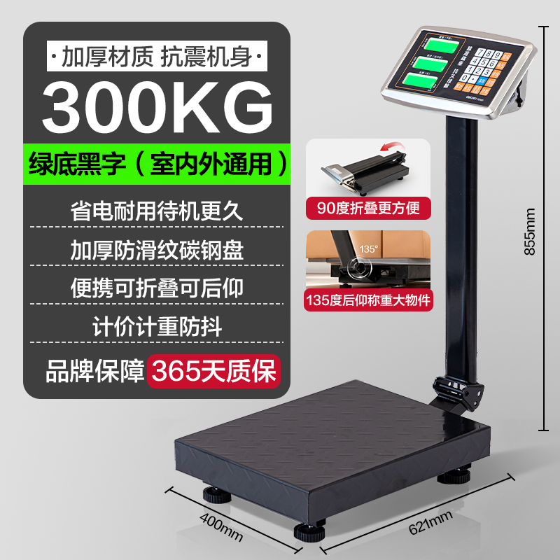 电子台秤磅秤落地电子秤,300Kg/50g,碳钢盘40*62cm可折叠/可后仰