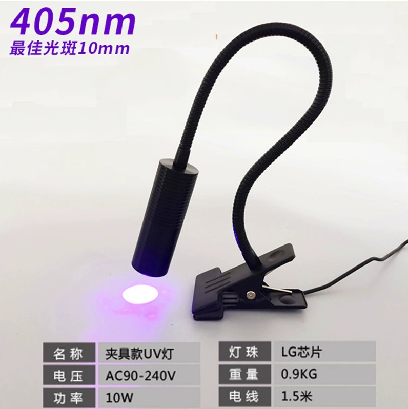 紫外线固化灯点光源UV固化灯 夹具款10W波长405nm线长1.5m最佳光斑10mm