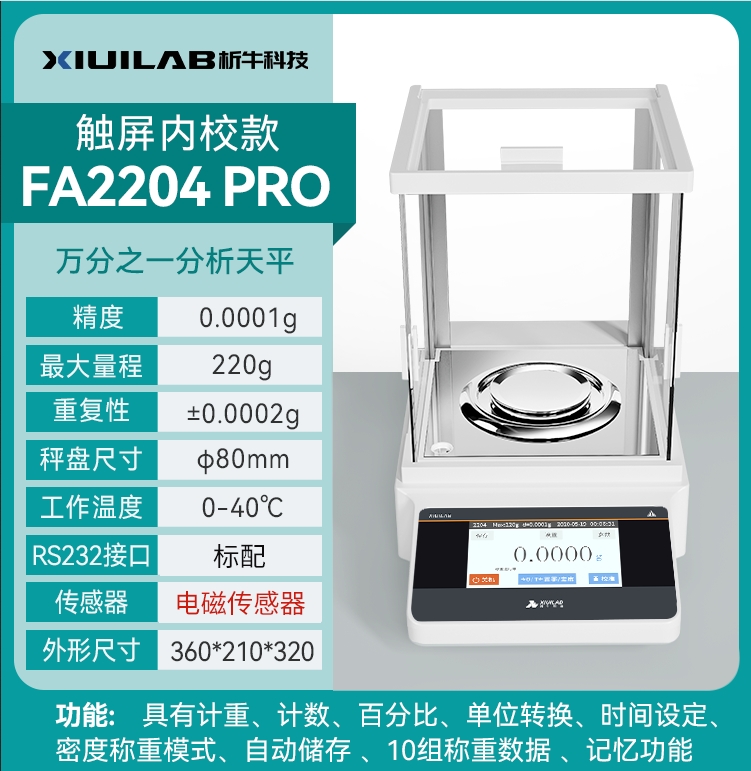 上海析牛分析天平 万分之一FA2204N PRO 触屏内校 220g/0.1mg