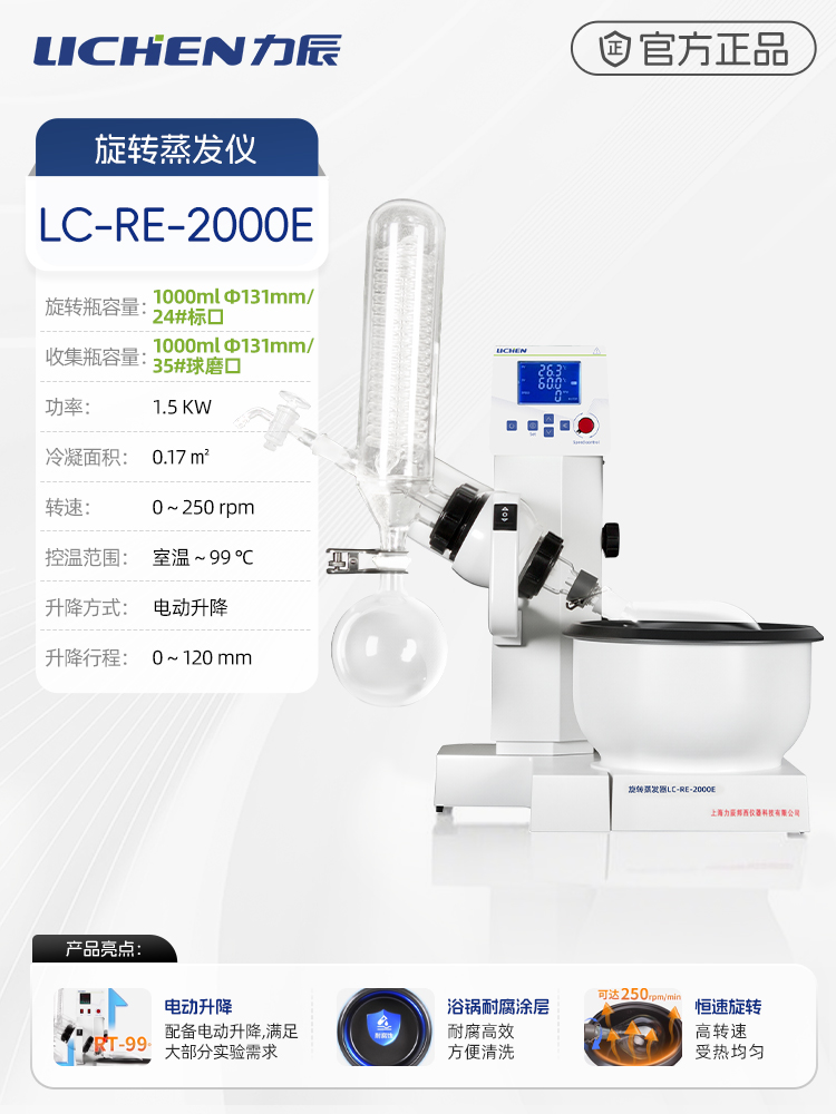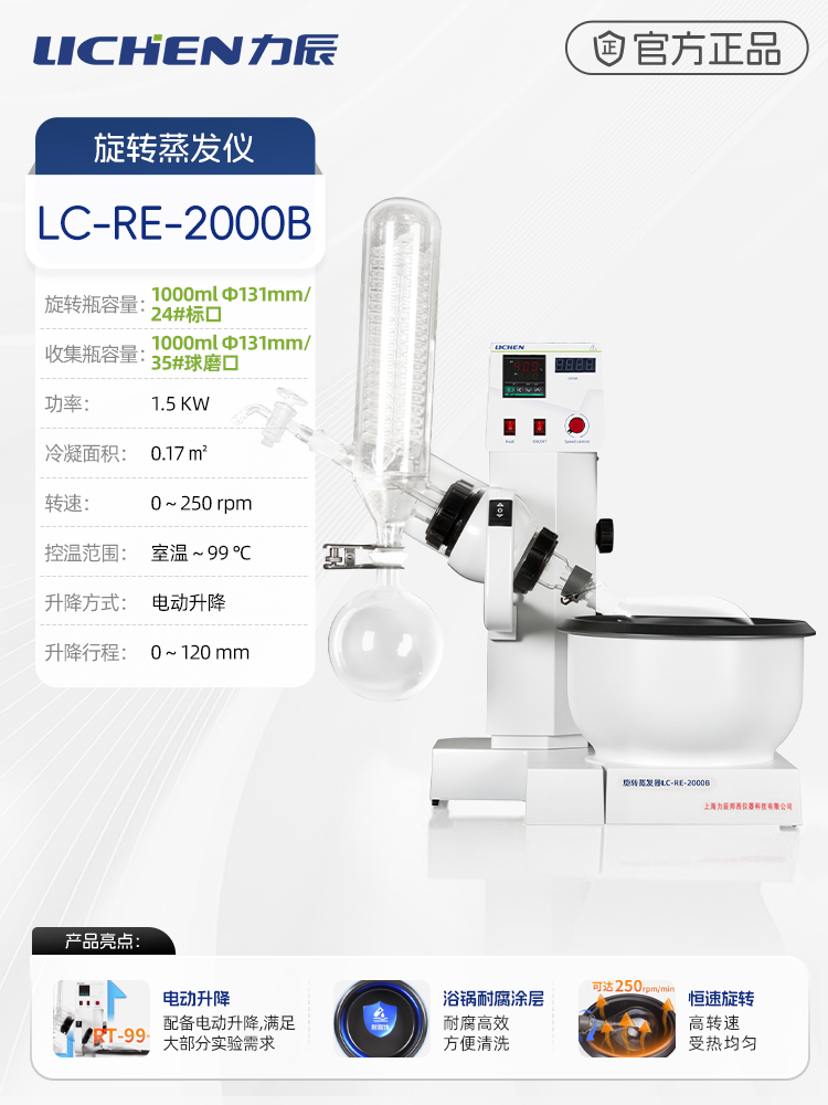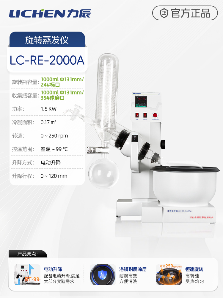 力辰旋转蒸发仪,【专业款,旋转瓶1升】温度数显 电动升降 LC-RE-2000A