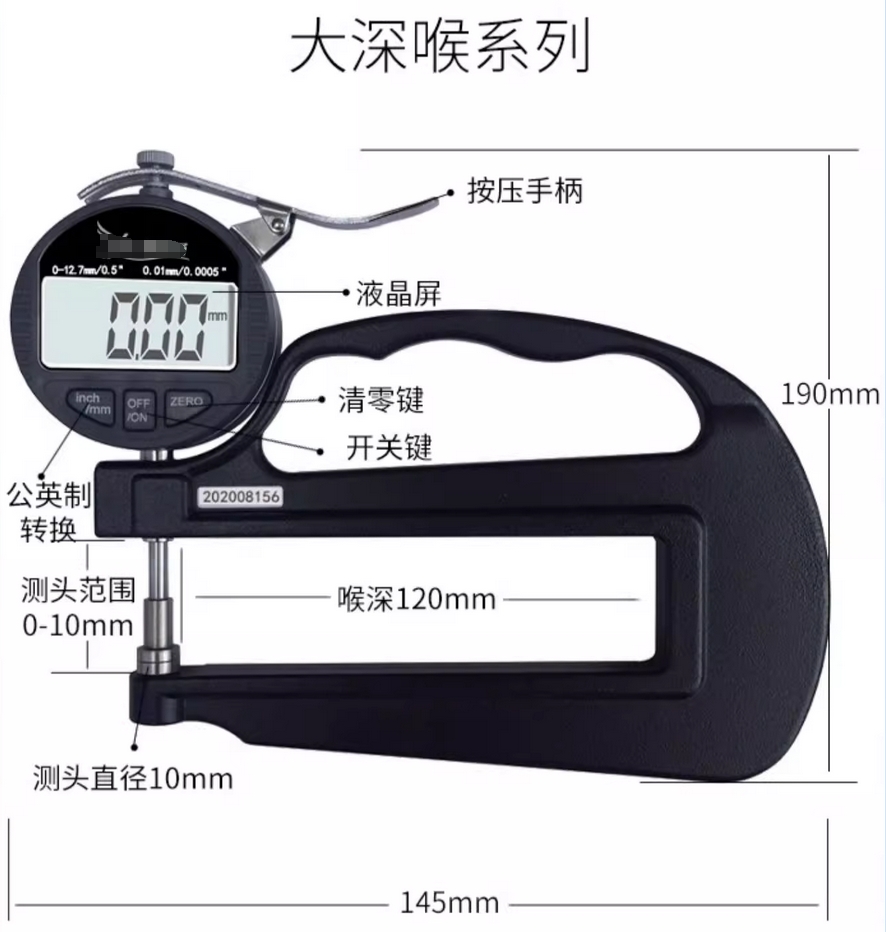 测厚仪/数显测厚规 千分0-12.7mm/精度0.001(测硬质 大深喉球头)