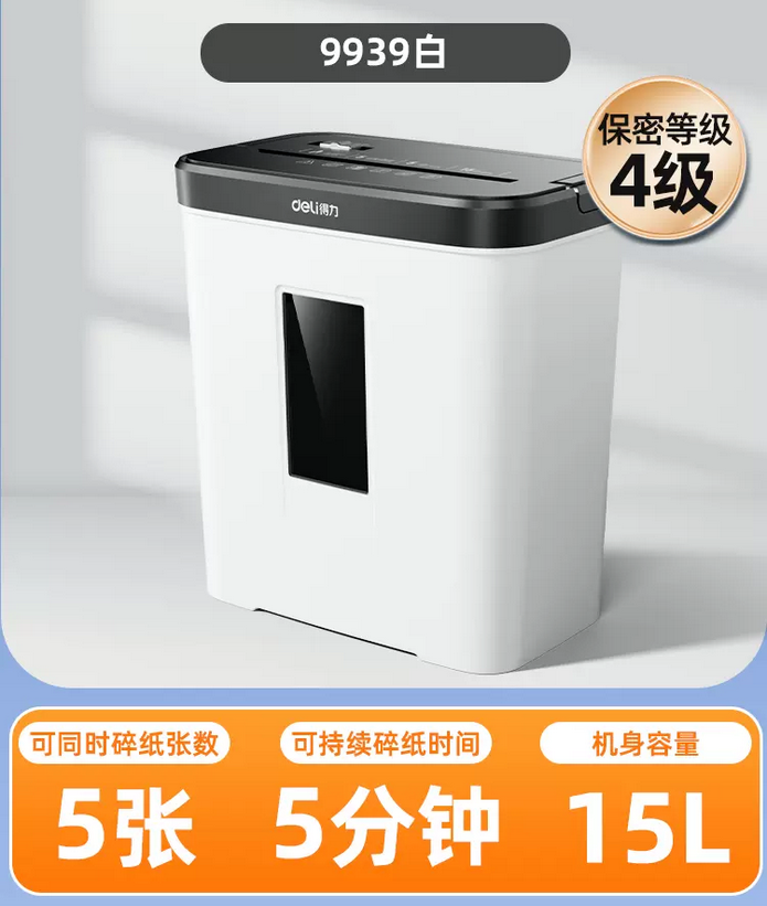 碎纸机,9939,4级保密/5分钟连碎/5张同碎/15L容量